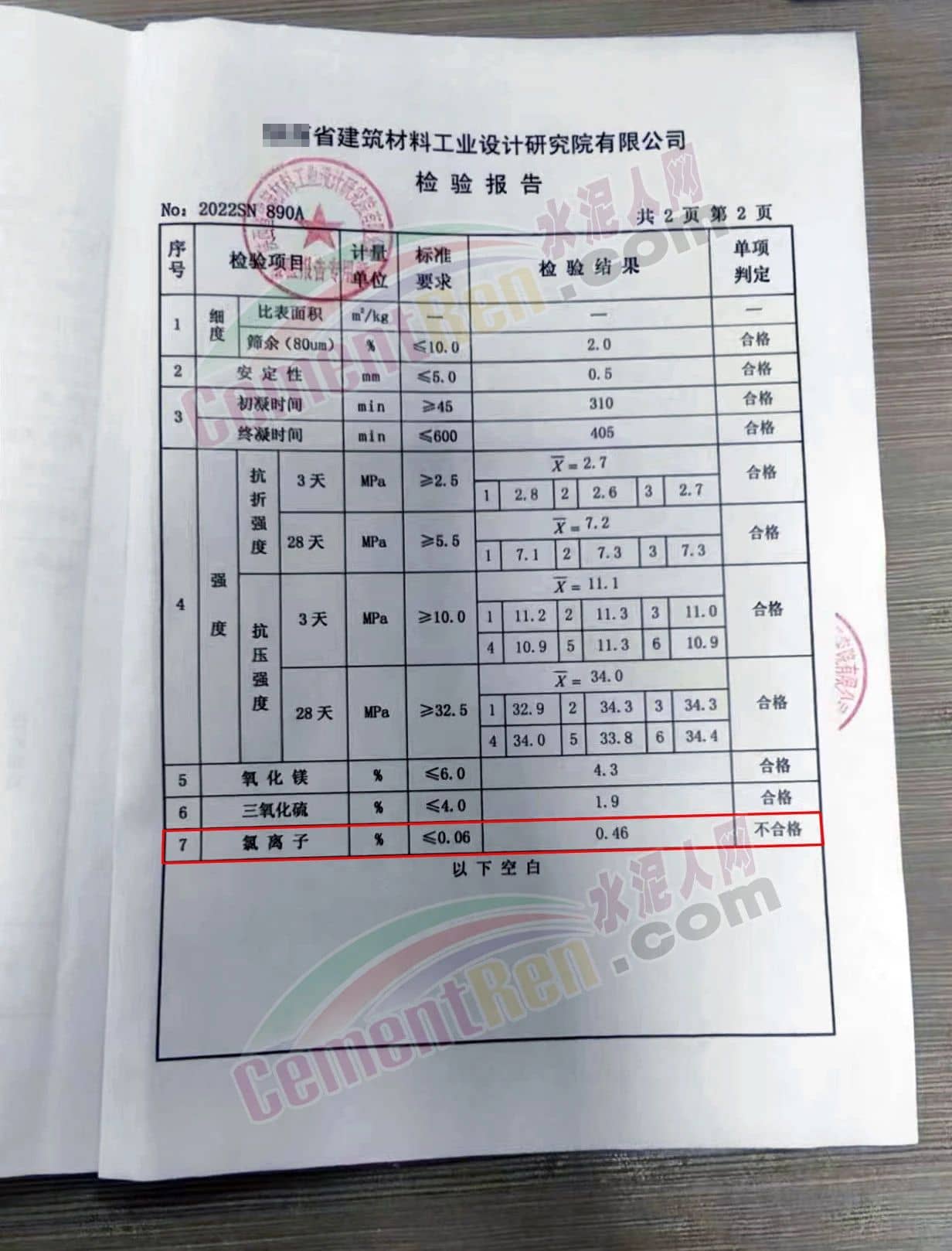 “眾力山水、鶴壁中聯”兩批次水泥“氯離子”不符合標準要求