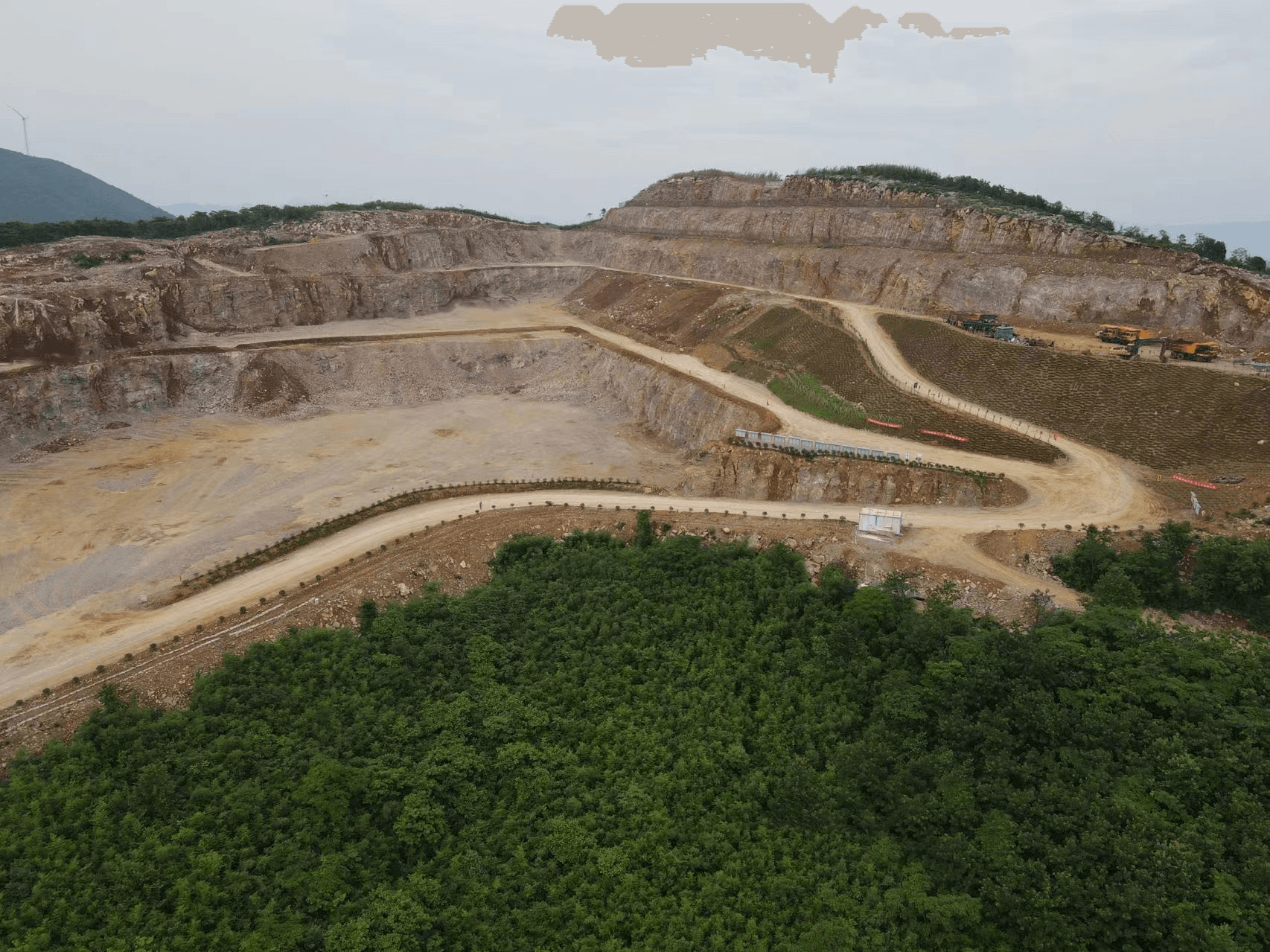 遵循“再利用、再循環(huán)、再發(fā)展”的原則,在最大限度保護(hù)好礦區(qū)原生態(tài)植被的同時(shí),加快推進(jìn)礦山山體修復(fù)及生態(tài)環(huán)境治理項(xiàng)目,不斷提高礦山綠化覆蓋率,實(shí)現(xiàn)礦山綠色修復(fù)和可持續(xù)發(fā)展。據(jù)項(xiàng)目經(jīng)理夏曉陽(yáng)介紹,整座礦山無(wú)排土場(chǎng),剝離廢土用以修路及平臺(tái)覆綠,完全零外排。