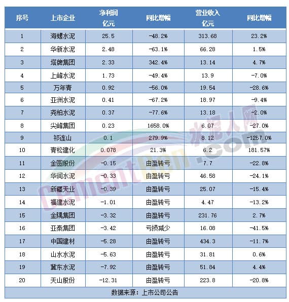 從各大上市企業一季度財報可見,行業3000多家水泥廠絕大多數量價齊跌,營收和利潤不是虧損就是下滑。上市的20家龍頭企業高達10家虧損,占比達50%,“水泥一哥”海螺水泥一季利潤同比暴跌48.2%。