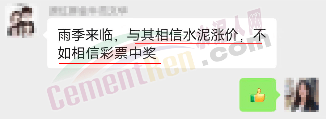 對于水泥企業復價上調,一經銷商調侃稱,雨季來臨,與其相信水泥漲價,不如相信彩票中獎。