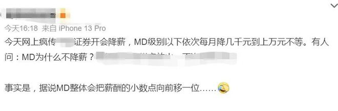 近日,券商“一哥”中信證券傳出降薪消息。根據(jù)網(wǎng)上截圖,該中字頭券商的投行中低職級員工的每月固定薪酬或?qū)⑵战担鶕?jù)職級每月固薪的下降5000元至10000元之間。