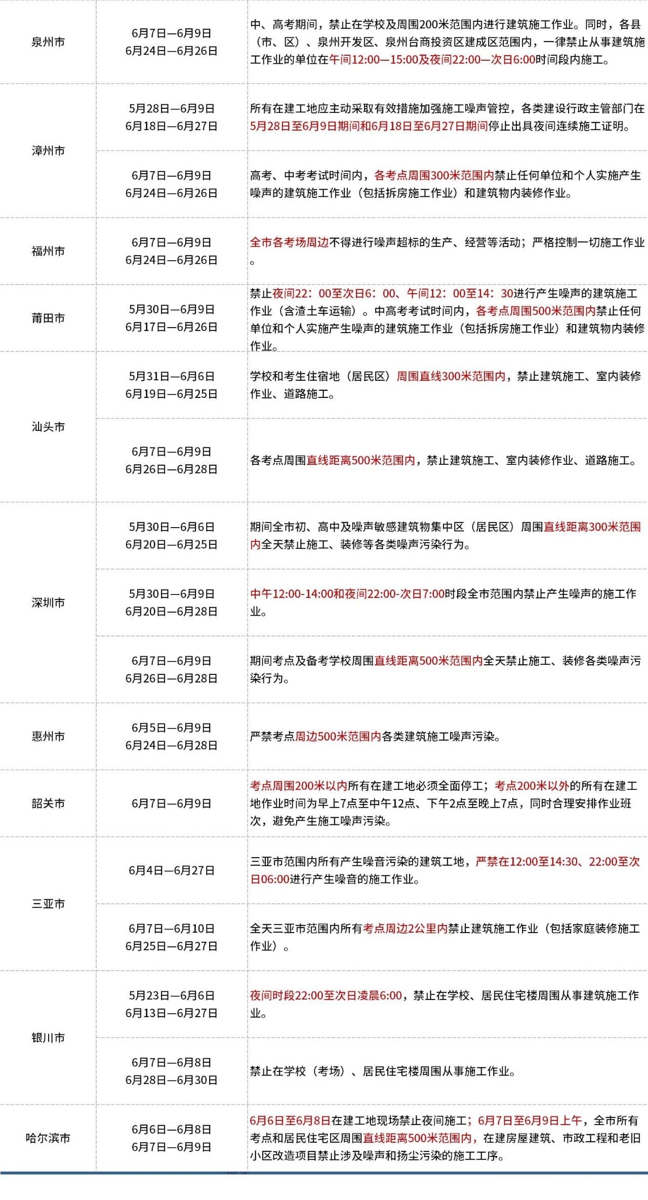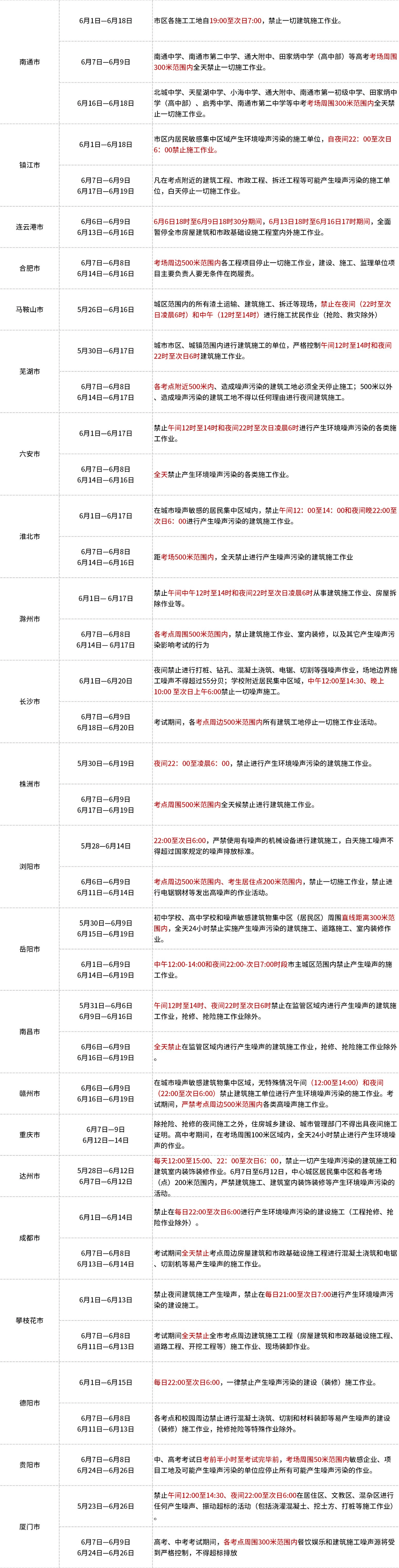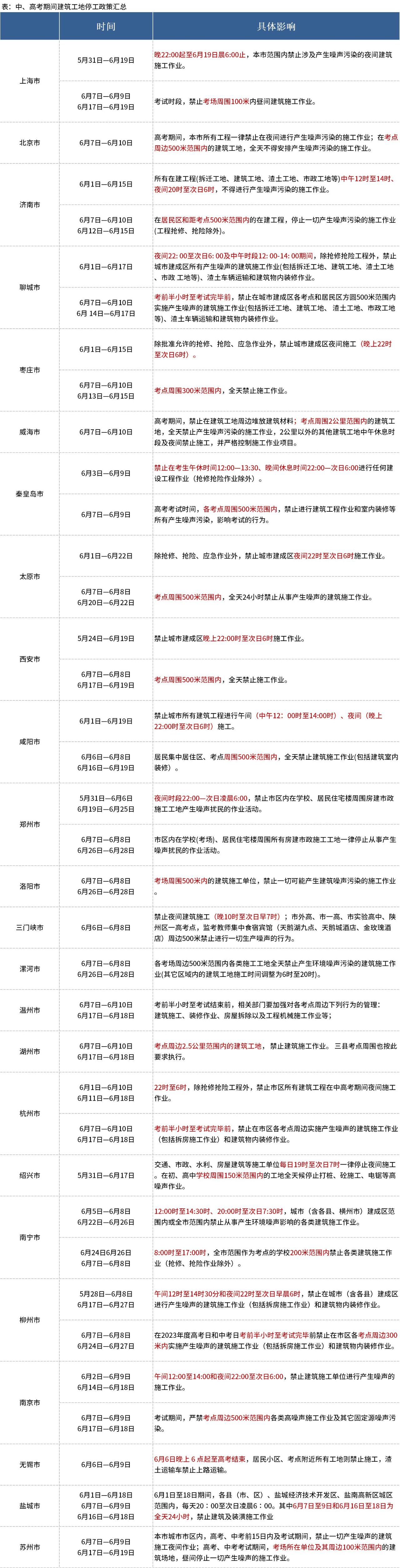 據市場反饋,為給廣大中、高考學生創造一個良好的復習迎考和考試環境,各地紛紛發出通知對所有建筑工地加強監管工作。截至6月7日,共有57個城市發布了建筑工地停工最新政策。