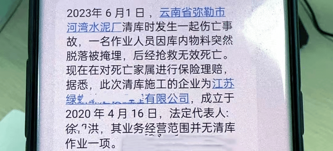 據水泥人網了解,6月1日,江蘇綠蜘蛛建設工程有限公司一員工在云南彌勒市河灣水泥廠清庫作業時發生事故,后經搶救無效死亡。