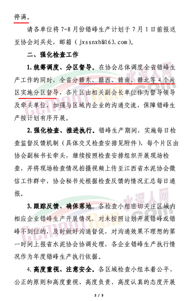 日前,江西省水泥協(xié)會通知全省在產(chǎn) 48 條熟料生產(chǎn)線將在7-8 月份統(tǒng)一錯峰生產(chǎn)13天以上,通知文件提到,當前,受房地產(chǎn)等影響行業(yè)需求相對疲軟,錯峰生產(chǎn)作為國家產(chǎn)業(yè)政策,是目前行業(yè)解決產(chǎn)能過剩矛盾的不二選擇,大企業(yè)要高度共識、帶頭引領、強化自律意識,進一步增強責任感,從“要我錯峰”向“我要錯峰”轉變切實將錯峰生產(chǎn)落實好。