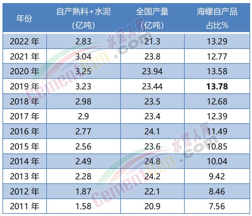 從歷史數據來看,自2011年以來,海螺水泥的自產品行業占比一直在穩步提升,最高占比發生在2019年,達到13.78%,之后有所回落,而到了2022年又發生反轉了。