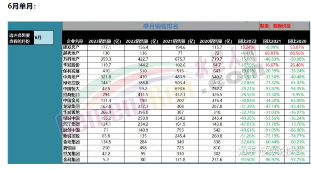 公開數(shù)據(jù)顯示,今年6月份碧桂園、濱江、新城控股、中鐵建、遠(yuǎn)洋等房企的銷售額均同比出現(xiàn)了腰斬,另外招商、華潤、金茂、龍湖、卓越等房企6月銷售額同比的跌幅也都在30%上下,萬科、保利、中海、綠地、華發(fā)等房企6月銷售額同比的跌幅也都在20%左右。6月房企實(shí)現(xiàn)銷售操盤金額5267.4億元,單月業(yè)績同比降低28.1%。