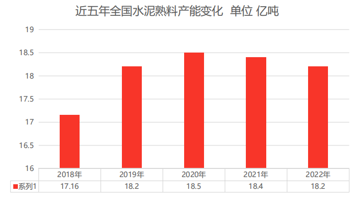 截至2022年末全國水泥熟料總產能為182324.95萬噸。其中新投產水泥熟料總產能約2318.8萬噸,約占全國熟料總產能的1.27%。