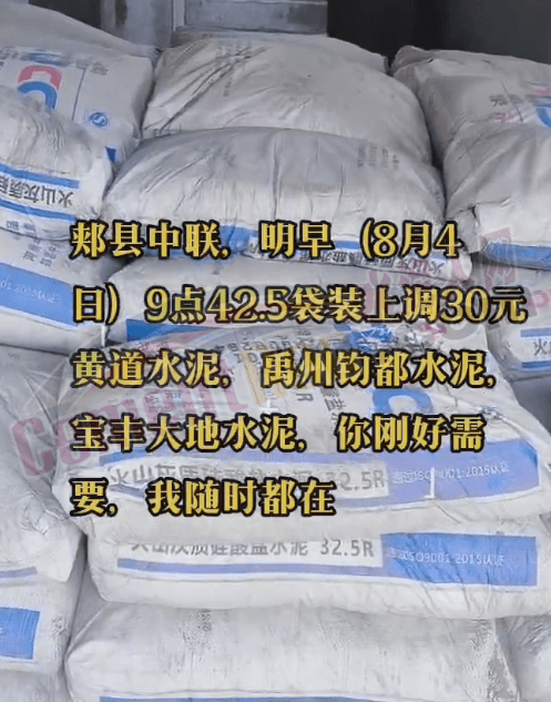 日前,有經(jīng)銷商通知,郟縣中聯(lián)通知自8月4日9時起42.5袋裝上調(diào)30元/噸,其他企業(yè)將陸續(xù)跟漲。消息一出,部分企業(yè)門前開始排起長隊。
