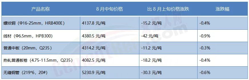 國家統計局24日公布的數據顯示,全國流通領域9大類50種重要生產資料市場價格,2022年8月中旬與8月上旬相比,23種產品價格上漲,22種下降,5種持平。水泥人網注意到與水泥相關的鋼鐵、煤炭等都在下跌。