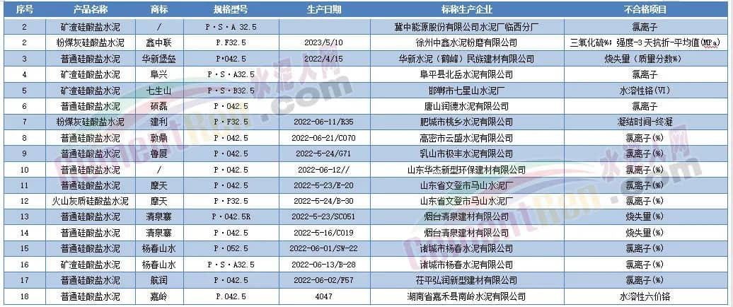 另有廣東、山東等多地市場(chǎng)監(jiān)管部門(mén)通報(bào)建材店銷(xiāo)售不合格水泥典型案例6起。